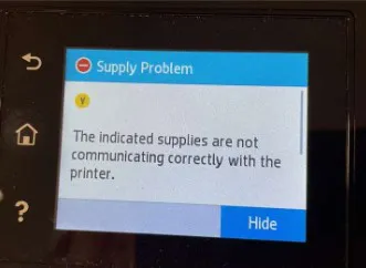 The 10.01.10 error means your printer cannot read the cyan toner cartridge data, usually due to a defective cartridge or a memory chip issue.