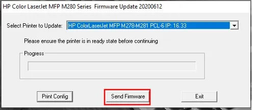 Note: If have screen shot above and printer connected by Ethernet did not update then check IP address is correct for the printer. Once IP is correctly set the printer may update without need to re-run the program.